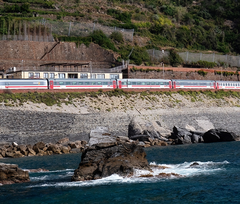 È uno dei casi più evidenti di ferrovia come strumento di tutela del territorio: consente di muoversi tra le Cinque Terre riducendo traffico e pressione veicolare, con viste costanti sul mare ligure.